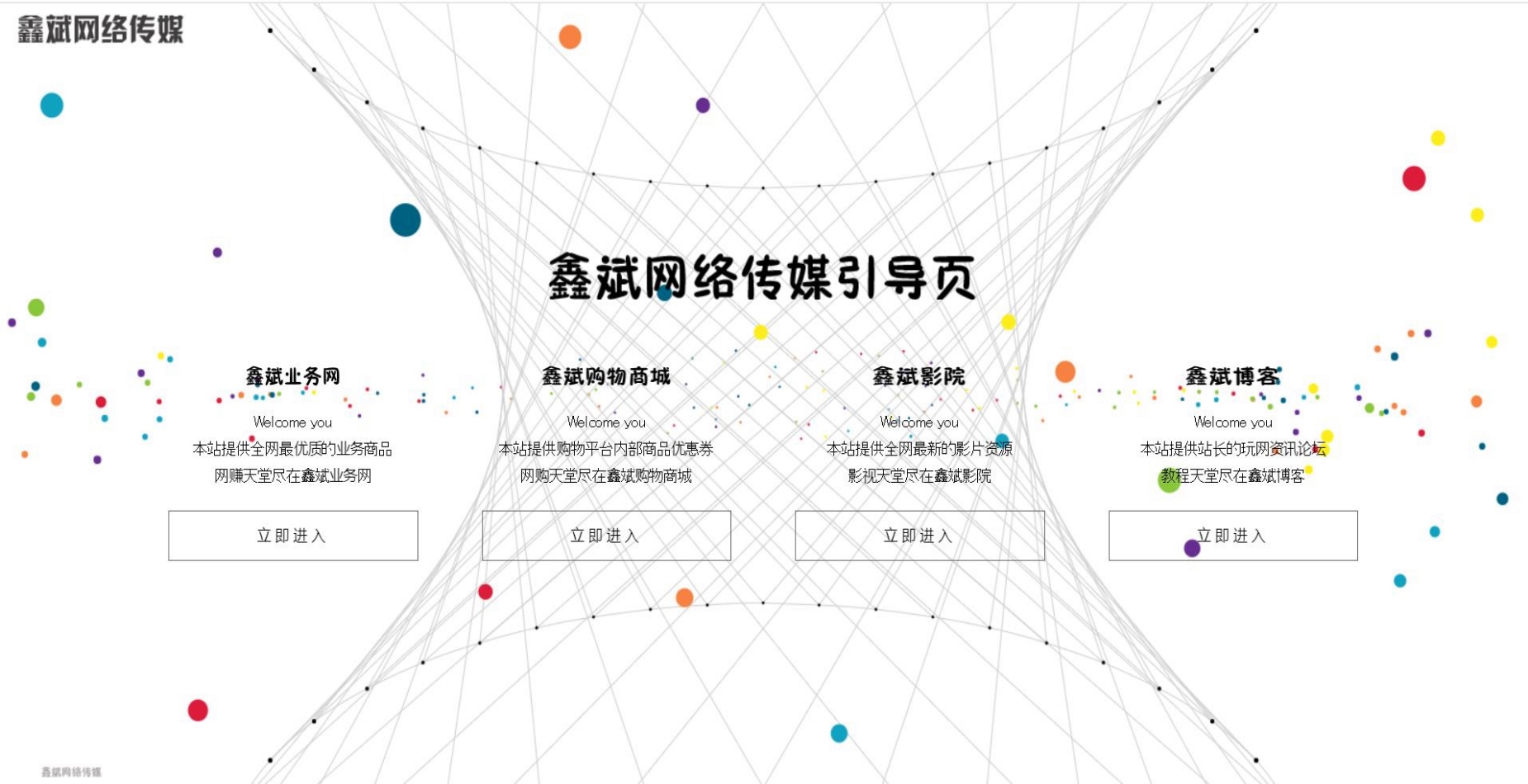 - 2019年06月17日,“鑫斌网络传媒”引导页正式上线,致力于为用户提供便捷和高效的服务中心。