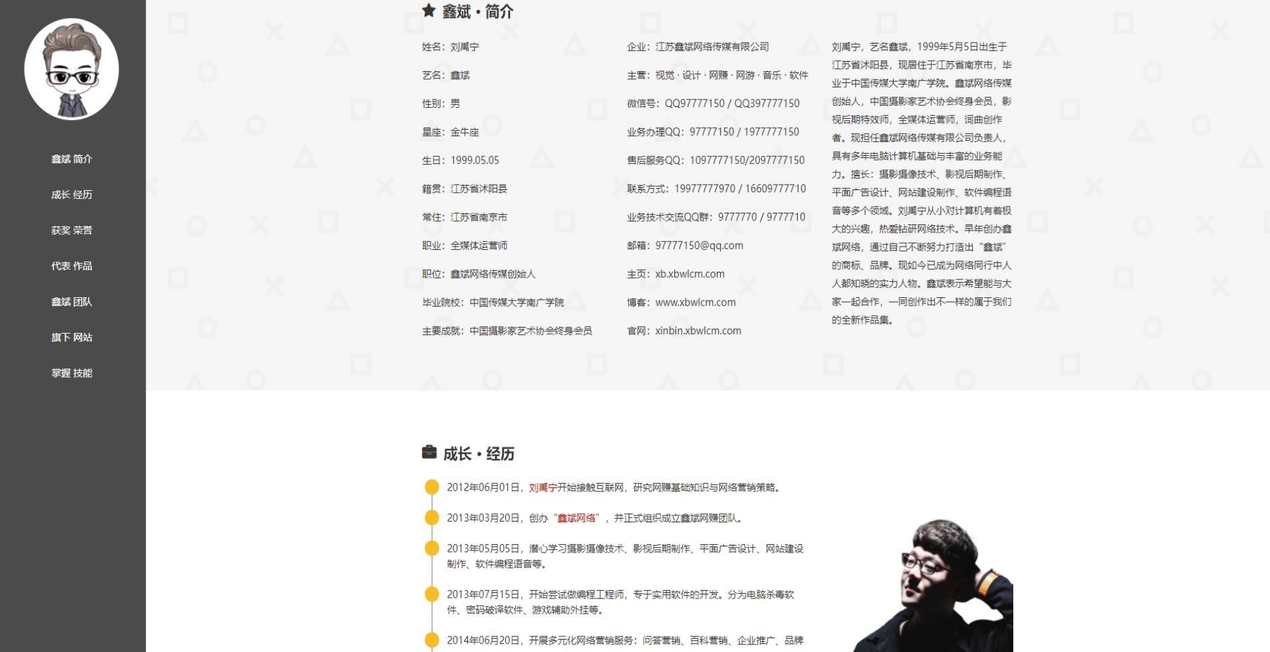 - 2013年03月20日,创办“鑫斌网络传媒”,并正式组织成立鑫斌网赚团队。