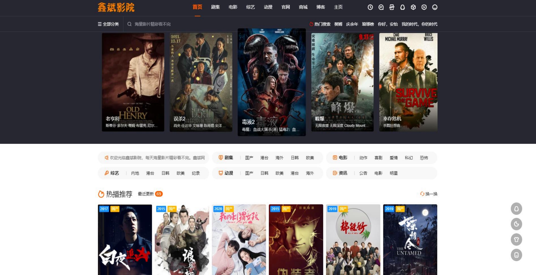 - 2020年02月06日,“鑫斌影院”网站系统全面升级更新完成,用户在线观看海量影片精彩看不完。