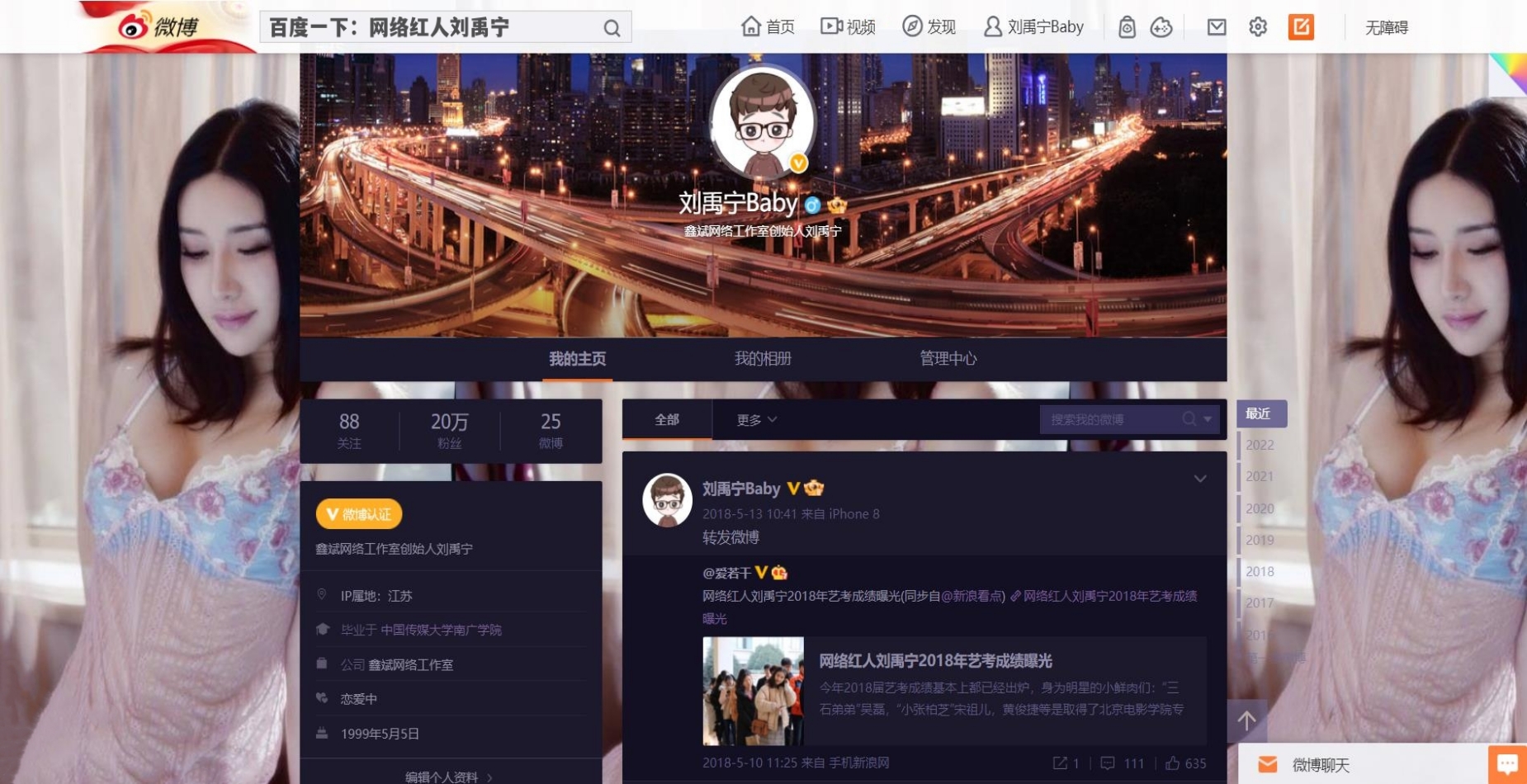 - 2016年06月14日,刘禹宁通过新浪微博官方认证。