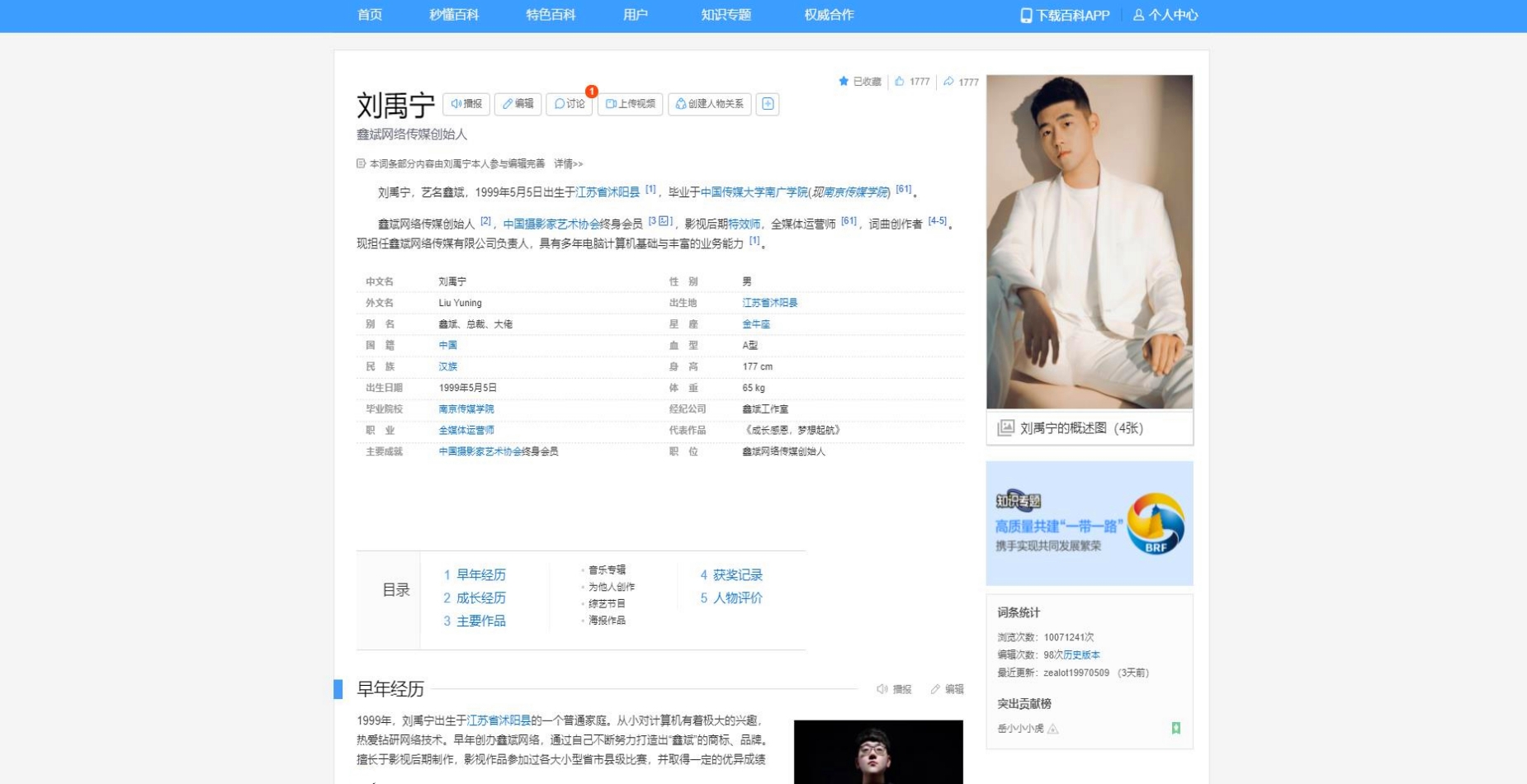 - 2017年10月28日,刘禹宁个人主页博客访问点击量突破300w。